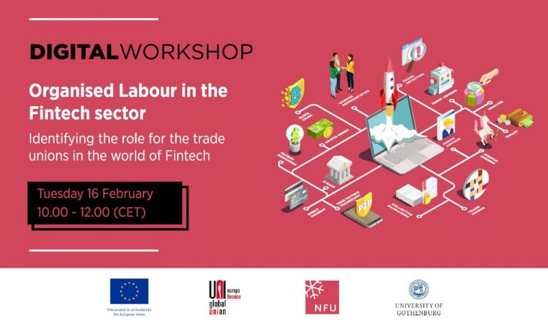 UNI Europa Finance, NFU and Gothenburg University are happy to invite you to the first virtual workshop of our joint research project on the impact of Fintech companies on the financial sector, and the role of trade unions in this landscape.